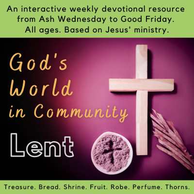 Spend 30 mins on each Wednesday of Lent. Through a series called God's world in Community, participants of all ages will explore sessions titled Treasure, Bread, Shrine, Fruit, Robe, Perfume, and… Read More